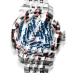 なお、ラズル・ダズル迷彩は前衛美術「キュビズム」の思想と強い親和性があり、その潮流を築き上げたパブロ・ピカソが「キュビズムの芸術家たちがラズル・ダズルを発明した」と語ったという逸話があるほどで、その独創的なパターンはアートにも大きな影響を与えました。実際に船体への塗装作業の監督・管理を担ったエドワード・ワズワースは、戦後に同迷彩を用いた木版画や絵画作品を発表し、ラズル・ダズル迷彩を芸術の世界へと橋渡ししています。かつてラズル・ダズル迷彩がこの世に現れたとき、船体一つひとつに手作業で塗装していたのと同じく、この時計のダイアルとベゼルもすべて手作業によって表現されています。