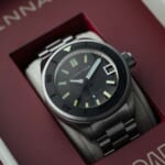 丸みを帯びたドーム型の無反射コーティングサファイアクリスタルレンズを採用した、ユニークなフォルムが印象的。潜水艦をイメージしたデザインは、腕時計自体を象徴するデザインにまとまり、着用時には腕元の存在感を高めています。