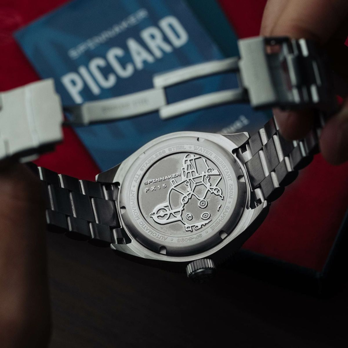 裏蓋を見ると、潜水艇をモチーフにした限定デザインを刻印。腕時計を外し、裏を返したときについつい目を奪われる、粋な計らいにも注目です。