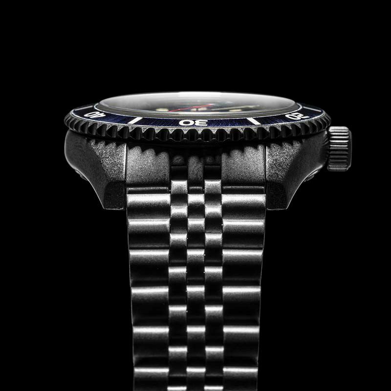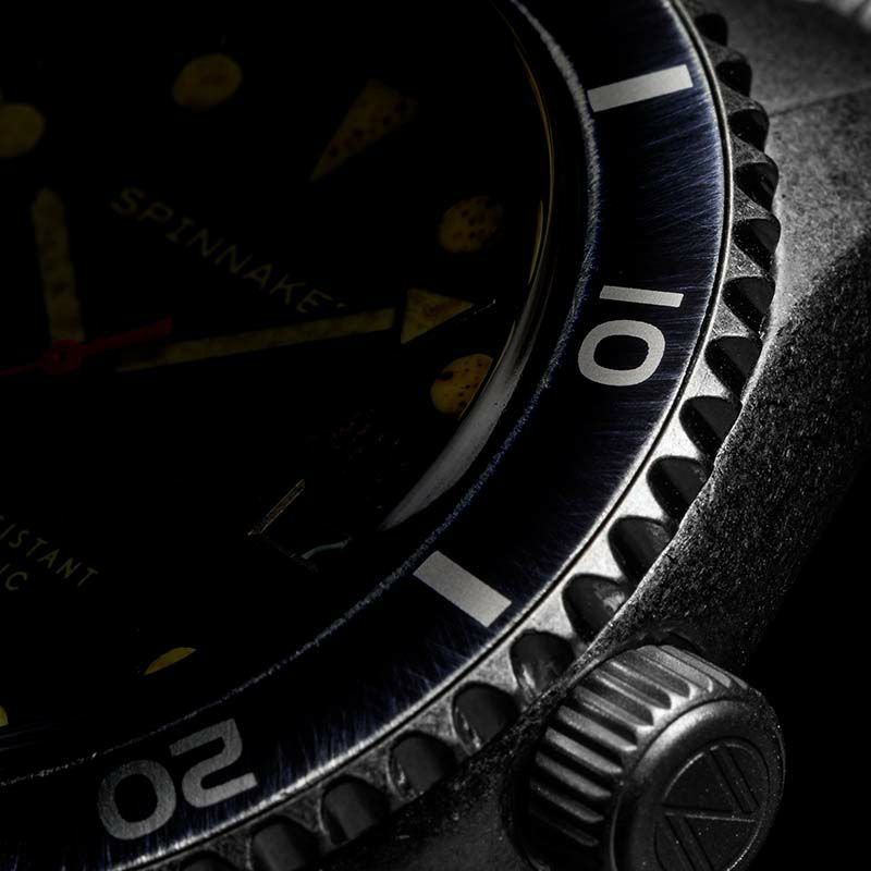 ヴィンテージウォッチのような風貌でありながらも、200m防水を完備。 風防にはサファイアガラスを採用したハイスペックウォッチです。