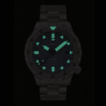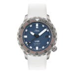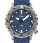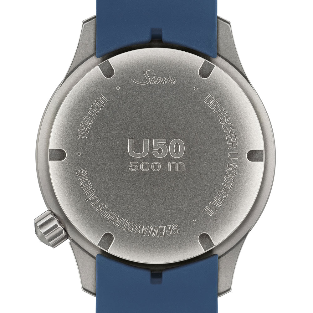 ジンの伝統に則し、U50 Bは洗練されたデザインと技術的卓越性を融合しています。ケースとリューズには、最高レベルの非磁性を持つ高強度・耐海水性のドイツ潜水艦Uボート・スチールで製造しています。この素材は通常、極限の海洋用途にのみ使用されます。特殊結合方式の回転ベゼルには、テギメント・テクノロジーによる硬化処理を施しているため、特に耐傷性に優れています。実用的な配慮として、4時位置に配置したリューズは手の甲への圧迫を防止します。