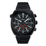 [ SPEC ]掲載されている商品はラインナップのご紹介となっております。カタログ番号 0000003767 サイズ 44mm 文字盤 ブラック 機能 クロノグラフ インデックス バー ケース素材 ステンレススチール+テギメント+PVD ベルト ブレスレット ベゼル インナーベゼル 日付 日付あり 防水性 100M 動力 自動巻き