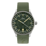 [ SPEC ]カタログ番号 0000007614 サイズ 40mm 文字盤 グリーン 機能 3針・ムーンフェイズ インデックス バー ケース素材 ステンレススチール ベルト ラバーストラップ ベゼル ノーマル 日付 ポインターデイト 防水性 200M 動力 自動巻き このモデルは機械式時計の精度と、狩猟時に直面する厳しい光環境や過酷な使用条件に合わせて特別に設計した機能を融合させた腕時計です。その中心となるのは、6時位置に配置したムーンライト表示です。これは、自然の月明かりが十分な明るさに達したことを知らせる特別な機構です。人工の光源を使用できず周囲の自然光のみが許される状況において、この機構は確かな指針となります。ドイツでは「Sauensonne ザウエンゾネ」と呼ばれる期間におけるムーンライト表示とその機能については、3006 Hunting Watch(ハンティングウォッチ)でより詳しく解説しています。掲載されている商品はラインナップのご紹介となっております。