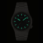 日常生活はもちろん、それ以上の場面でも自信を持って着用できるよう設計されたこの時計は、耐水性、減圧耐性を備え、最大20気圧までの耐圧性能を保持しています。透明な裏蓋から見ることができる洗練された自動巻きムーブメントは約60時間のパワーリザーブを保証します。