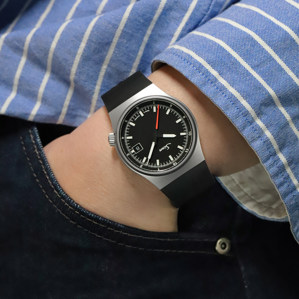 このモデルには、ほこりや湿気の侵入を防ぐ確かな保護機構としてSINN独自のD3システムを採用しています。手作業で配置したハイブリッド・セラミック製の夜光インデックスにより、優れた視認性を確保。