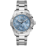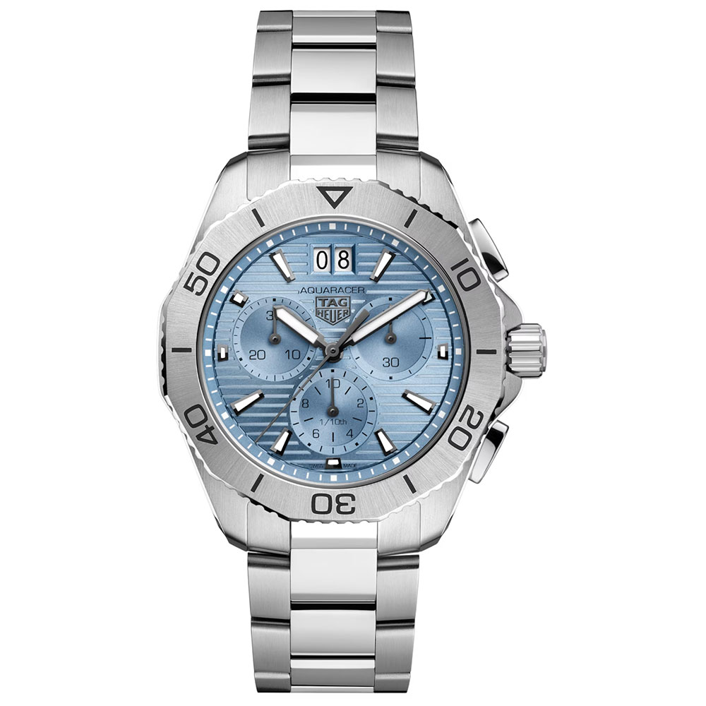 [ SPEC ]掲載されている商品はラインナップのご紹介となっております。カタログ番号 0000002438 サイズ 40mm 文字盤 アイスブルー 機能 クロノグラフ・ダイバー インデックス バー ケース素材 ステンレススチール ベルト ブレスレット ベゼル 逆回転防止ベゼル 日付 日付あり 防水性 200M 動力 クォーツ