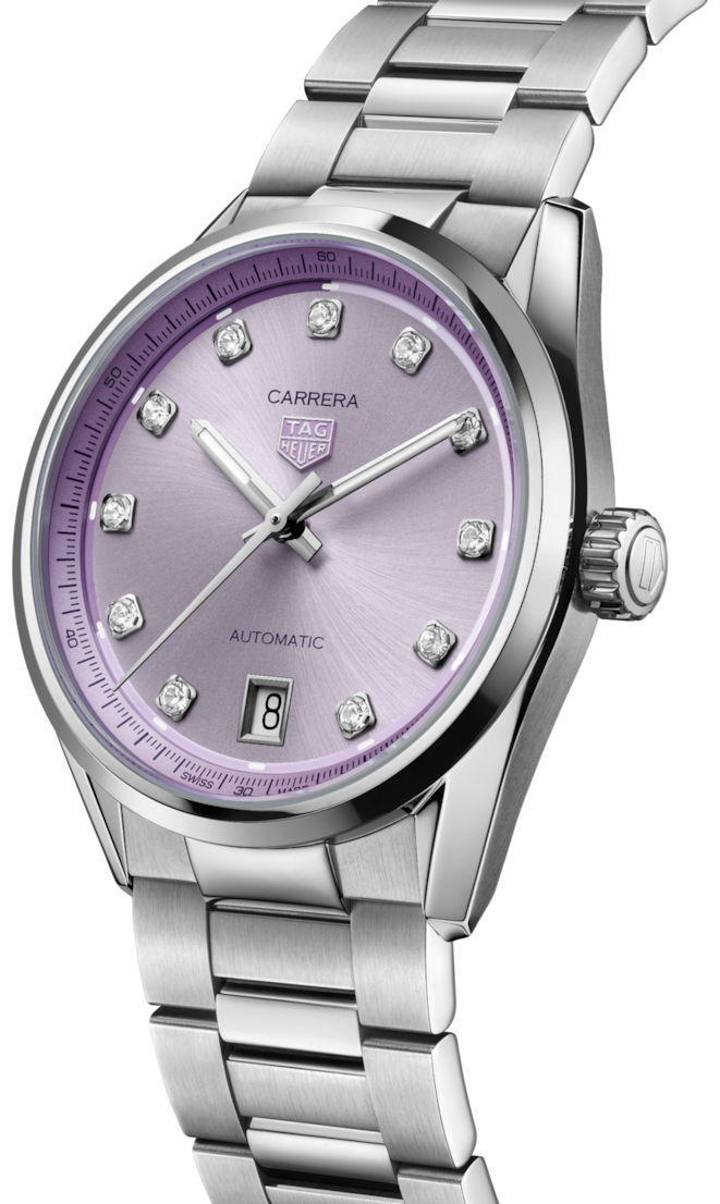 [ SPEC ]掲載されている商品はラインナップのご紹介となっております。カタログ番号 0000006613 サイズ 36mm 文字盤 パープル 機能 3針 インデックス ダイヤモンド ケース素材 ステンレススチール ベルト ブレスレット ベゼル ノーマル 日付 日付あり 防水性 50M 動力 自動巻き