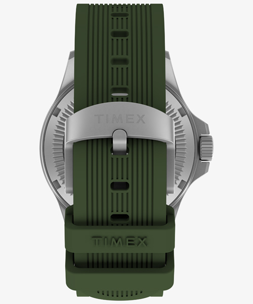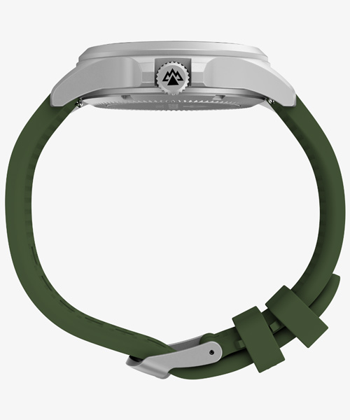 柔軟なシリコンストラップに反射防止サファイアクリスタル、ねじ込み式のリューズと裏蓋を備えた41mmのリサイクルステンレススチールケースに、頑丈なクラウンプロテクターを搭載。 蓄光の針とインデックスが、暗闇でも視認性を確保してくれます。
