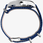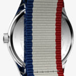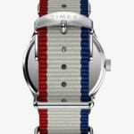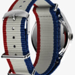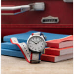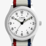 39mmのスリムなステンレススチールケースには、清潔感のあるホワイトの文字盤が合わせられ、12時間と24時間表示のインデックス、そして暗くなっても時刻を確認しやすい蓄光針を搭載しています。