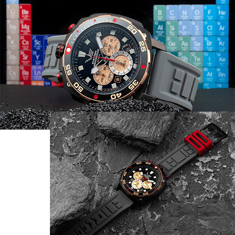 [ SPEC ]掲載されている商品はラインナップのご紹介となっております。カタログ番号 0000004729 サイズ 45.5mm 文字盤 ブラック 機能 クロノグラフ ケース素材 ブラックPVD ベルト ラバーストラップ ベゼル 逆回転防止ベゼル 日付 日付あり 防水性 200M 動力 クォーツ