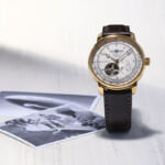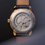 ストラップには、カーフレザーを採用。アイボリー文字盤やゴールドカラーケースと好相性のブラウンカラーで染め上げています。